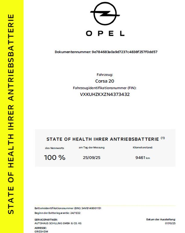 Opel Corsa Elektro Edition 1 Hand Scheckheft